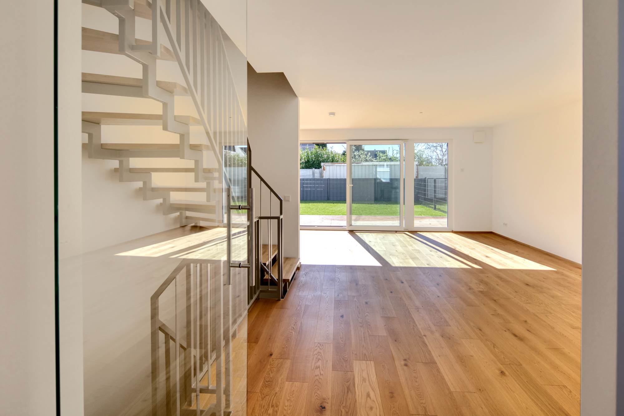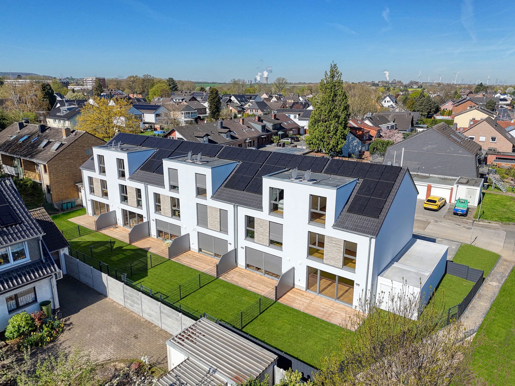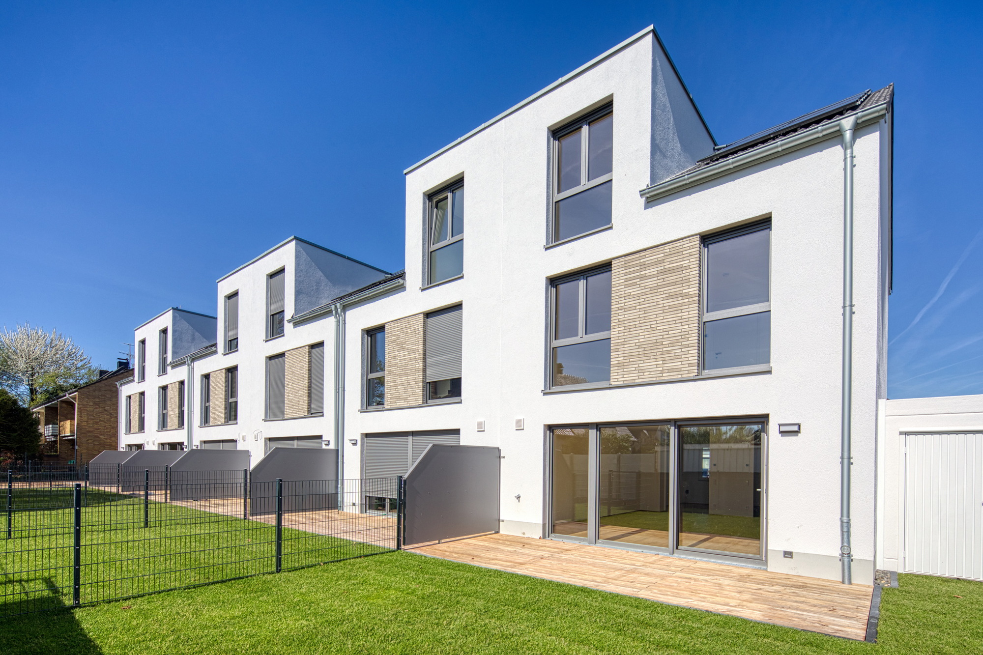 The new-build project “Green Fusion”, due for completion in 2026, offers six high-quality terraced houses in a family-friendly location in Pulheim-Geyen. The houses impress with around 140 sqm of living space spread over three levels plus a full basement, as well as a well-thought-out layout and high-quality fittings. Spacious, open-plan living areas with direct access to the south-facing terrace and the fully landscaped gardens create an ideal home for families. Our clients are looking forward to light-filled rooms and a pleasant living environment. The converted attic and versatile basement rooms offer additional space and flexibility. The sustainable energy concept, compliant with the KfW 40 standard and featuring a heat pump and photovoltaic system, rounds off the project. We wish the new owners every happiness in their new home.