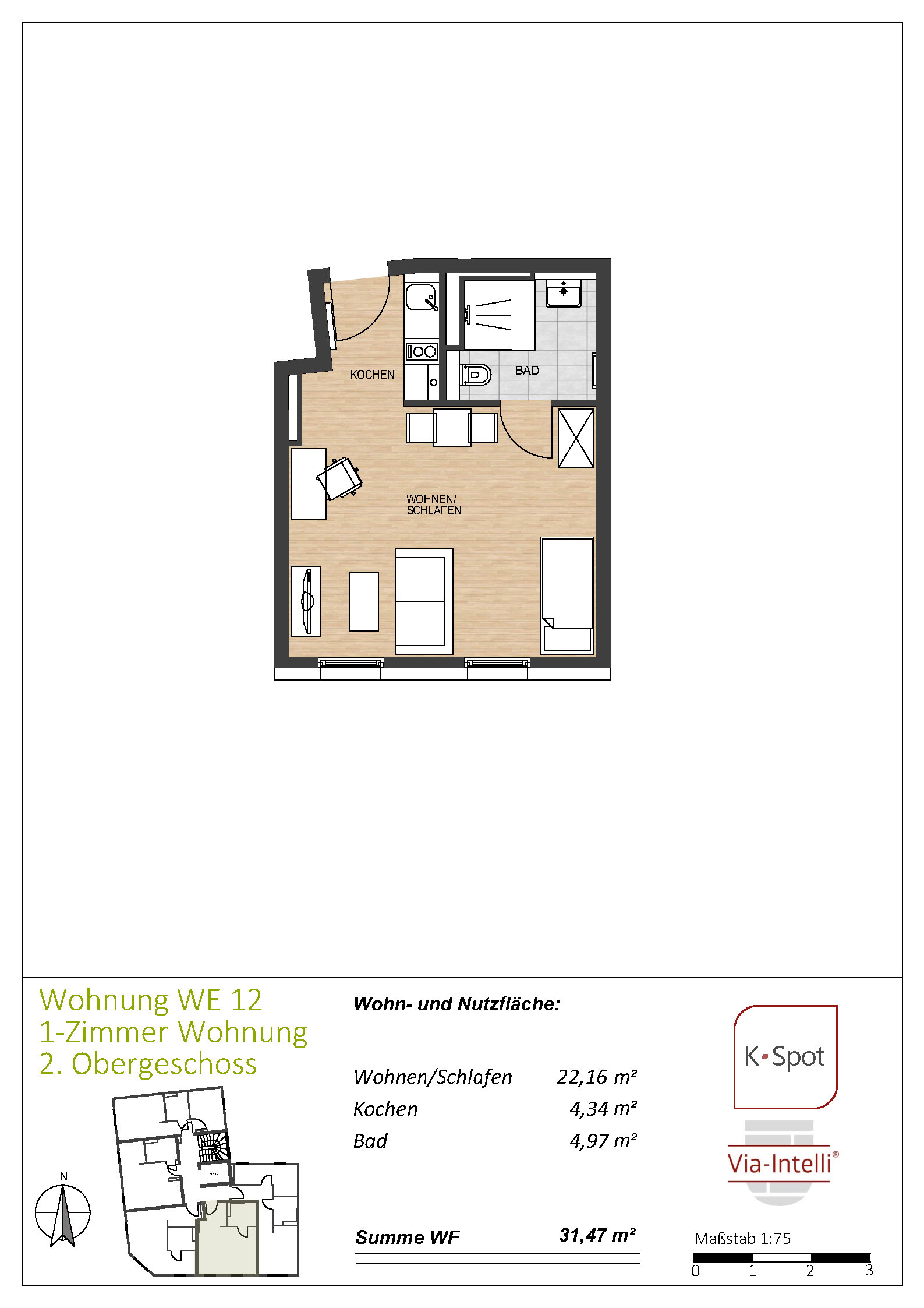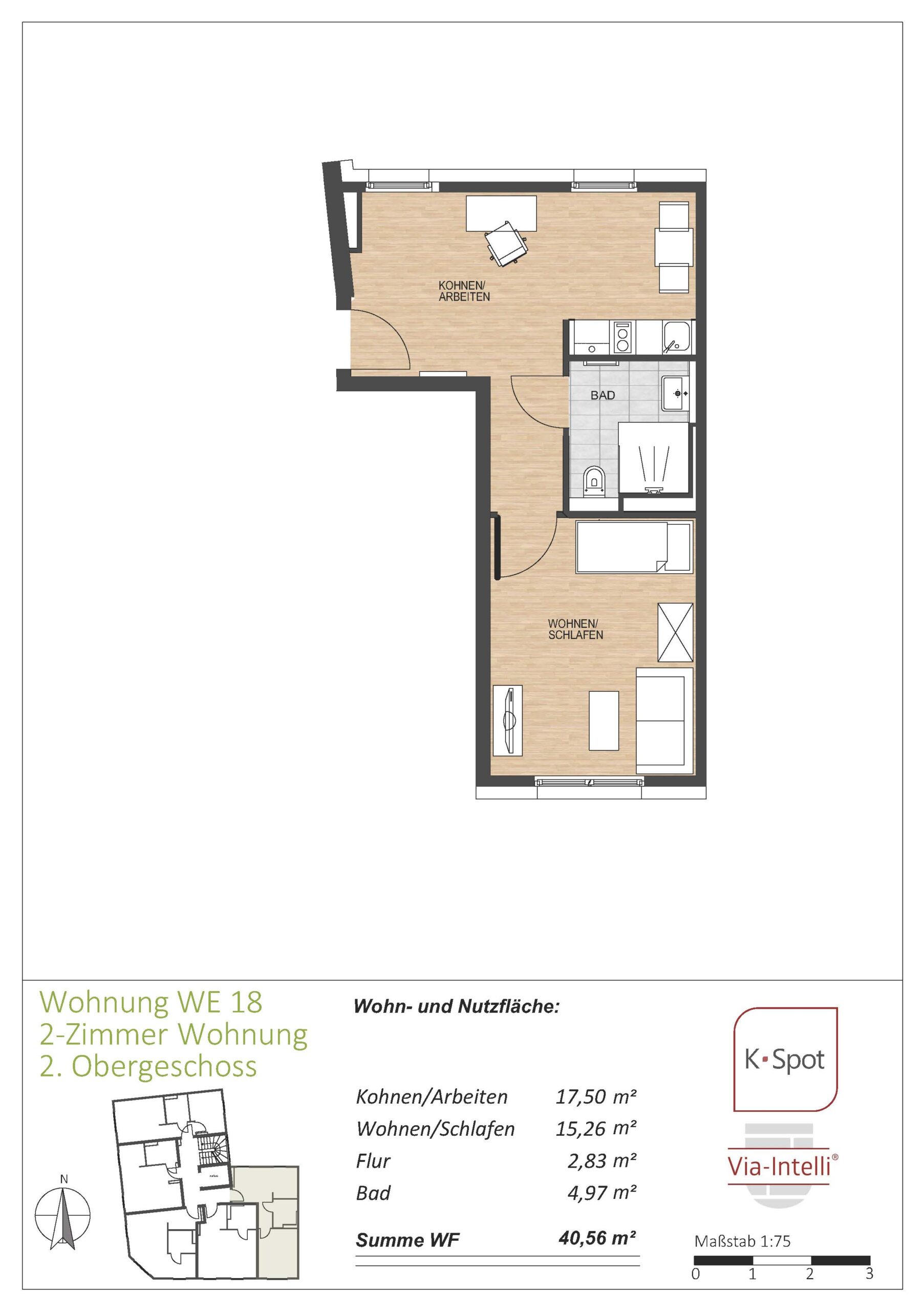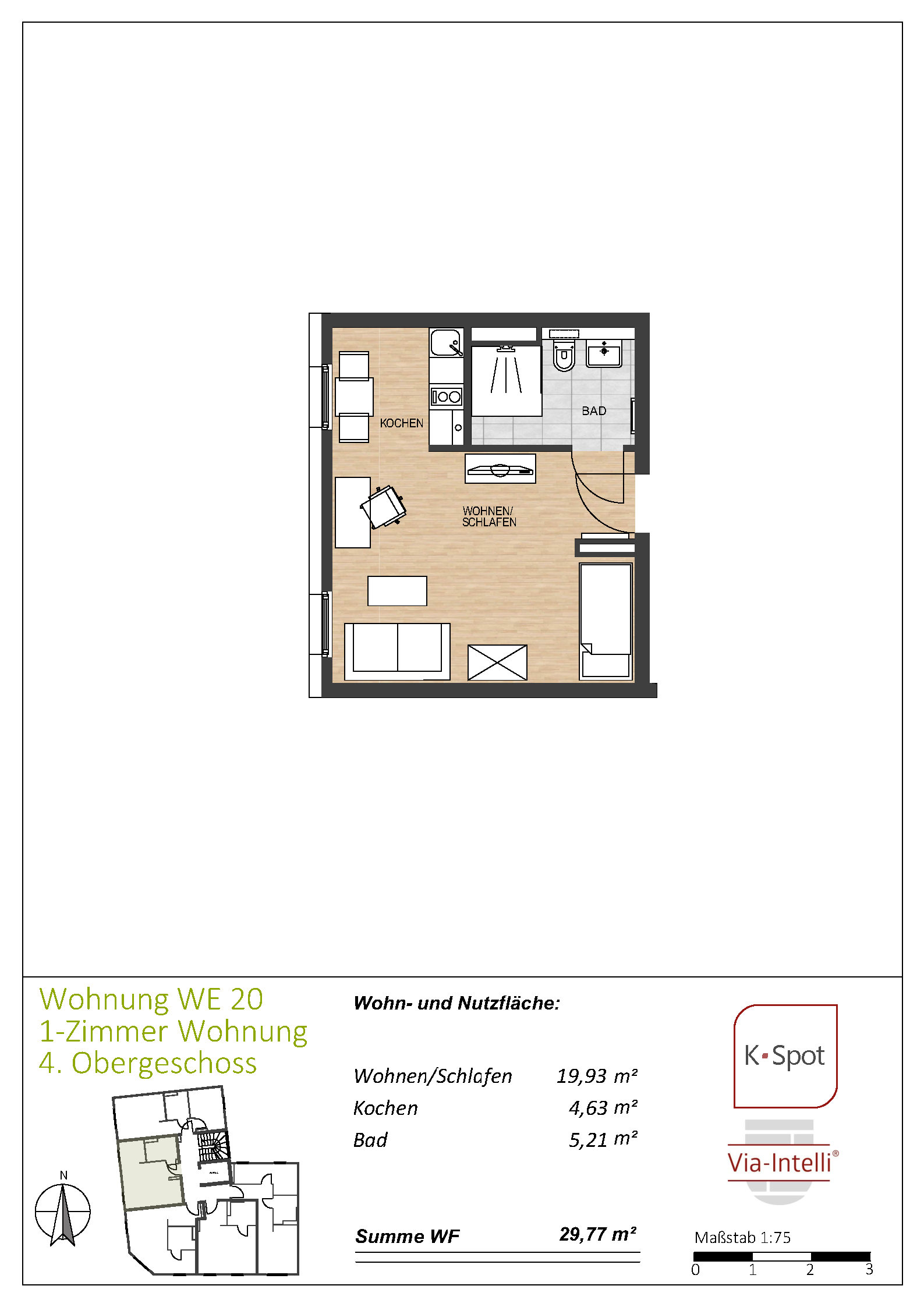 Via-Intelli® presents the K-Spot new-build project – 27 ready-to-move-in flats with living areas of 29 to 47 square metres in an excellent micro-location, at a fixed price and without estate agent commission. K-Spot is a modern, five-storey flat block being built in the middle of a mature Wilhelminian-style neighbourhood within walking distance of Cologne-Deutz. The energy-efficient building is being constructed to the KfW 40 standard with QNG certification. The modern building technology with heat pump and photovoltaic system ensures low operating costs and creates the conditions for low-interest KfW subsidised loans as well as the lucrative special tax depreciation of 5 percent per year for the first four years plus up to 5 percent depreciation on the investment costs. The one- to two-bedroom flats are sold ready to move into – whether for owner-occupation or as an uncomplicated capital investment. An initial letting service is already included for investors and ensures smooth letting to solvent and credit-checked tenants. The Via-Intelli® team will be happy to advise you on this innovative project.