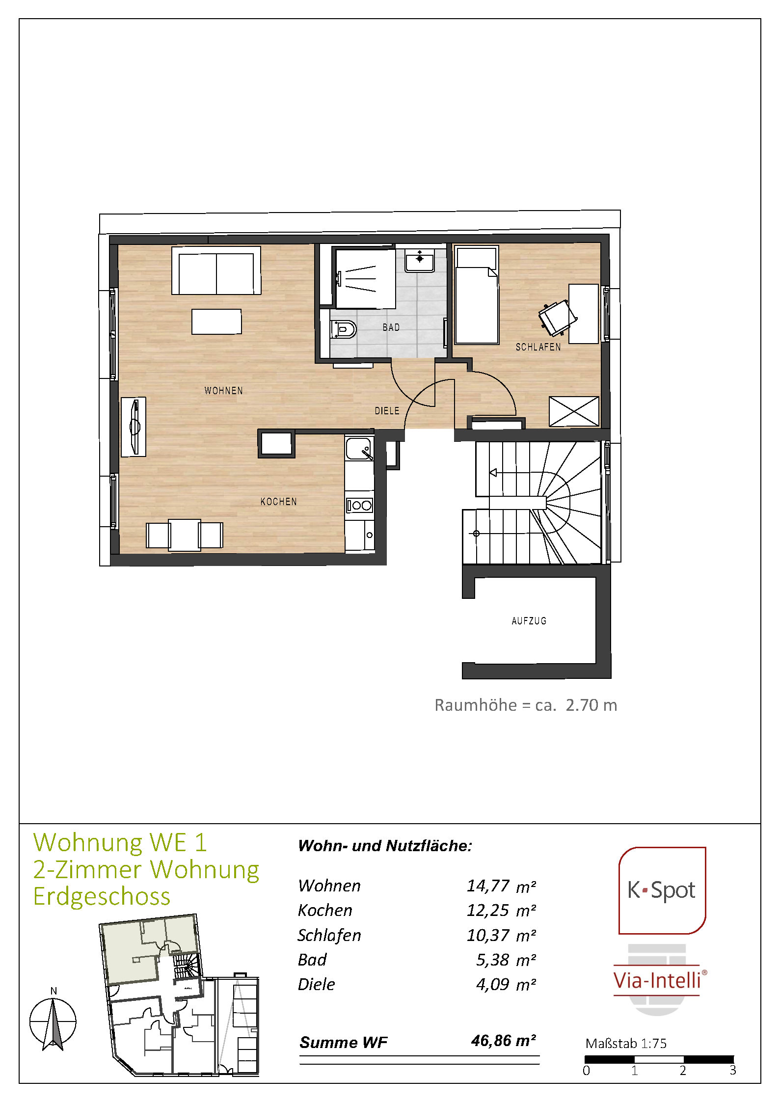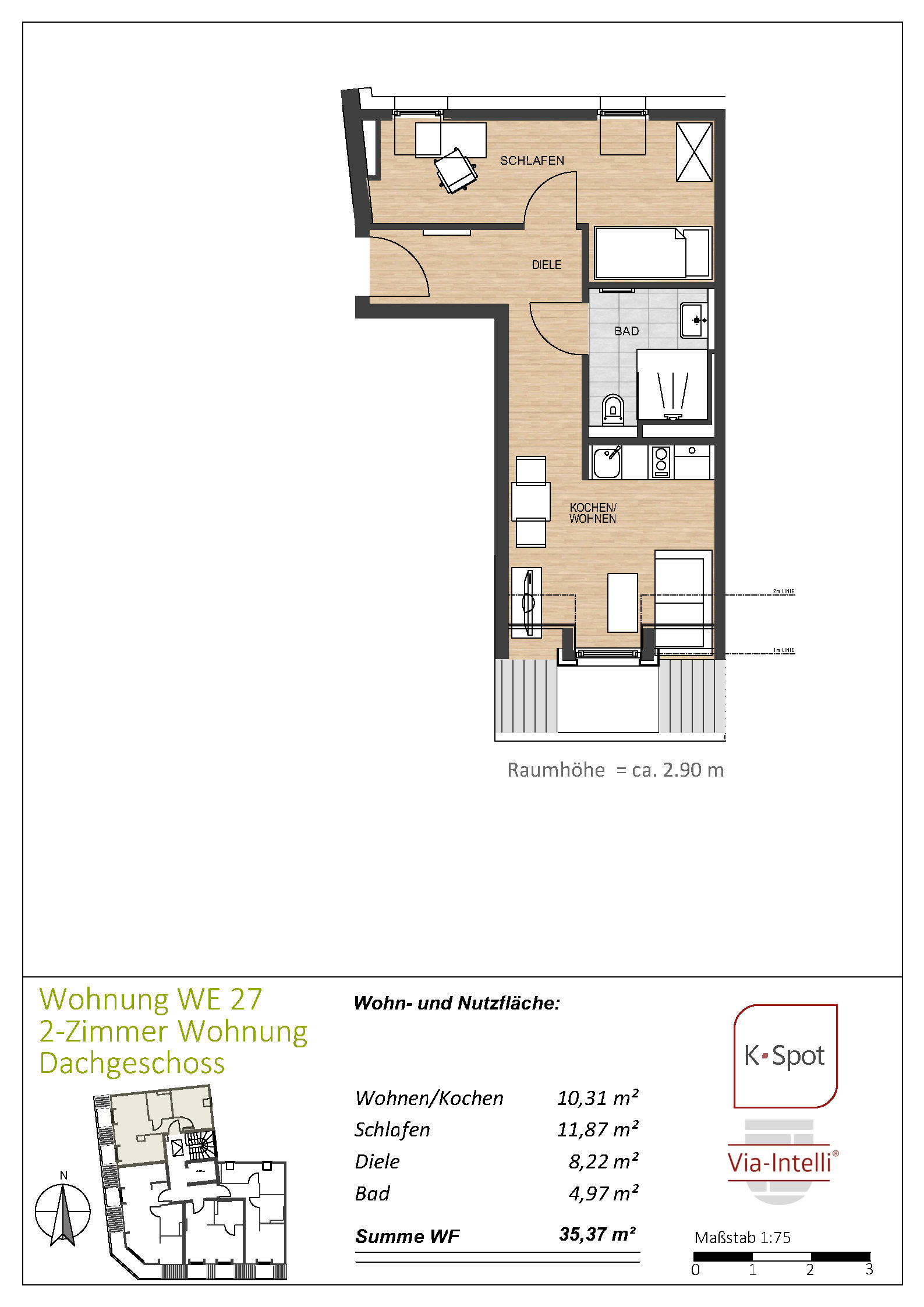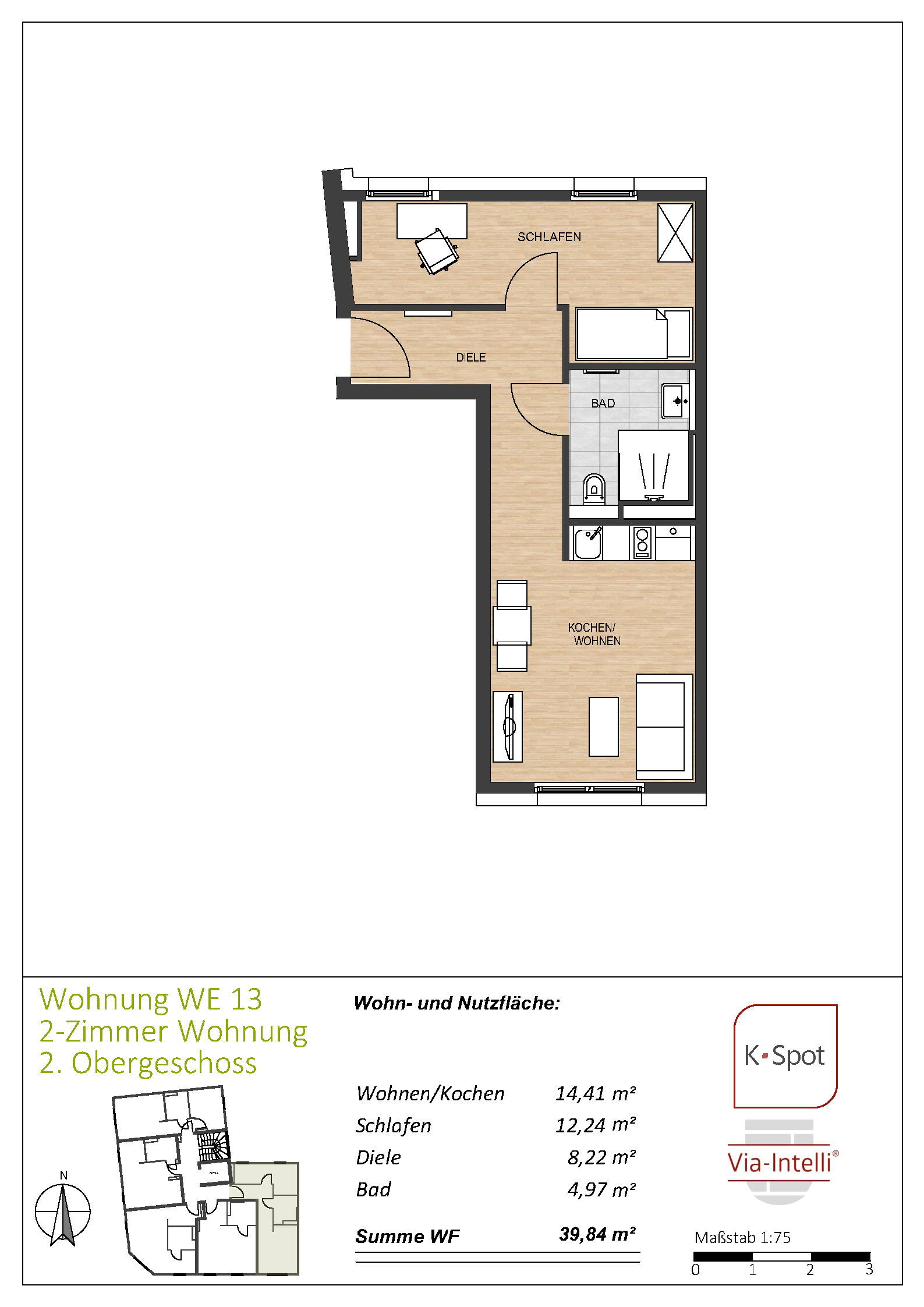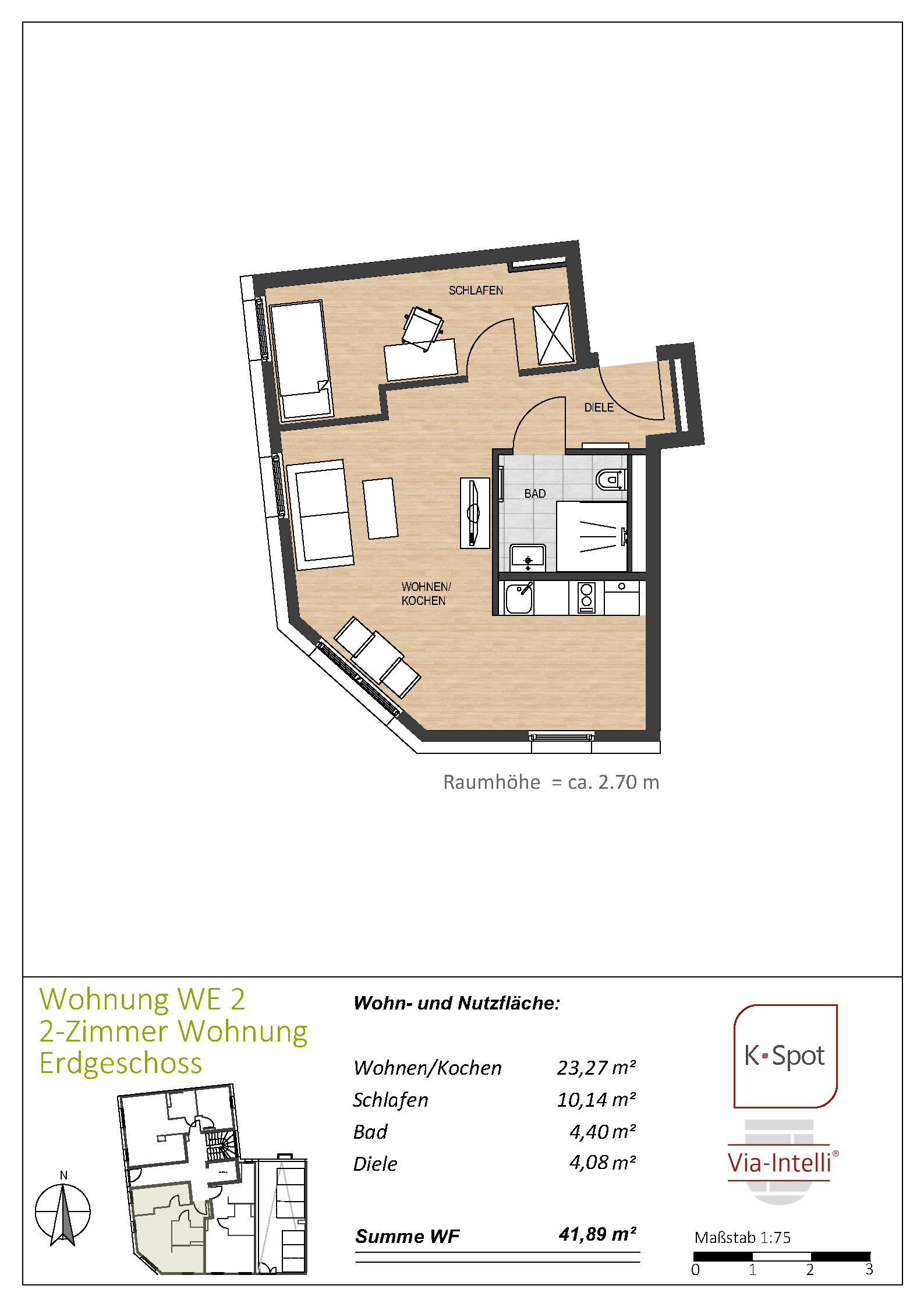 Via-Intelli® presents the K-Spot new-build project – 27 ready-to-move-in flats with living areas of 29 to 47 square metres in an excellent micro-location, at a fixed price and without estate agent commission. K-Spot is a modern, five-storey flat block being built in the middle of a mature Wilhelminian-style neighbourhood within walking distance of Cologne-Deutz. The energy-efficient building is being constructed to the KfW 40 standard with QNG certification. The modern building technology with heat pump and photovoltaic system ensures low operating costs and creates the conditions for low-interest KfW subsidised loans as well as the lucrative special tax depreciation of 5 percent per year for the first four years plus up to 5 percent depreciation on the investment costs. The one- to two-bedroom flats are sold ready to move into – whether for owner-occupation or as an uncomplicated capital investment. An initial letting service is already included for investors and ensures smooth letting to solvent and credit-checked tenants. The Via-Intelli® team will be happy to advise you on this innovative project.